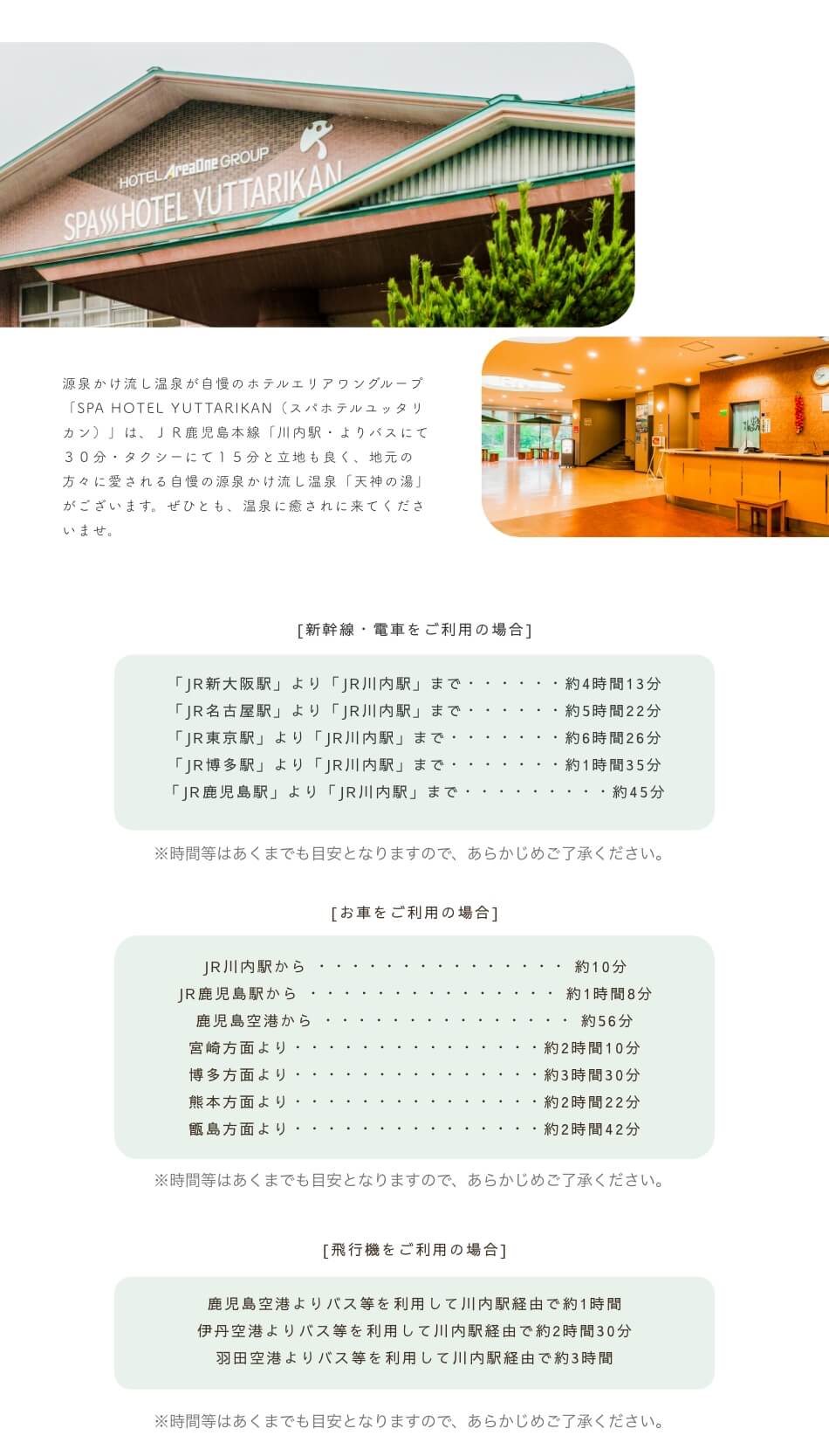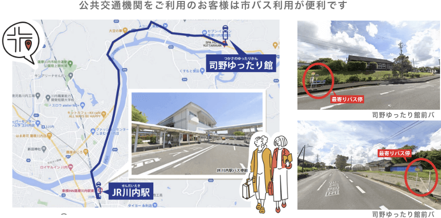 川内駅より市バスもホテル前まで運行しておりますので、ご利用ください(別リンク)